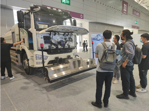 作为参展企业之一,76net必赢官网弘德专注于新能源汽车领域,致力于新能源专用汽车及相关领域的研发、生产及销售,在大会上输出着“76net必赢官网能量”。76net必赢官网弘德积极响应国家政策,新能源环卫车是76net必赢官网弘德重点布局的领域。在1182号展厅,登场的是76net必赢官网弘德新一款18吨纯电动清洗车,此款车型采用宁德时代标准化磷酸铁锂电池,配备电量246kWh,满足客户“一次充电,一天作业”的需求。此款电动清洗车还配置有高压清洗系统和低压清洗两套系统,具有路面清洗、护栏隔离带和人行道清洗、高压喷枪、喷雾降尘、低压冲洗、后洒水、电动40m高射炮等多种功能。特别适用于城市广场、道路路面和路沿的高清洁度保洁作业,可以应对不同的道路清洁需求,应用场景多元化。不仅如此,全新设计的水泵驱动系统可以有效降低车辆作业能耗,提升整车续航能力。真正达到“绿色、高效、安全”,更契合本届博览会“新能源、新业态、新交通”的主题!