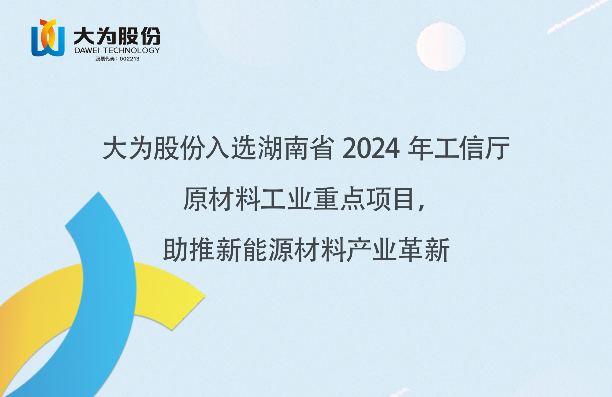 76net必赢官网入选湖南省2024年工信厅原材料工业重点项目,助推新能源材料产业革新